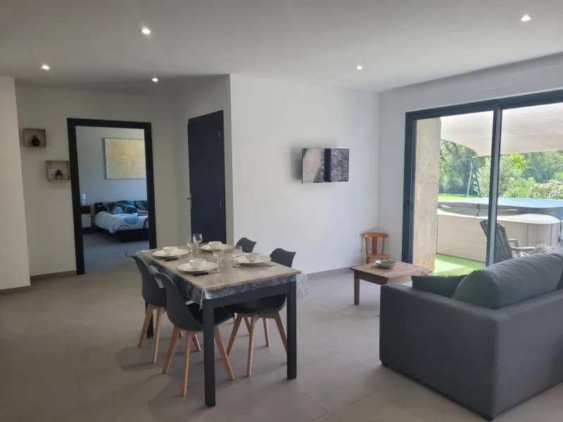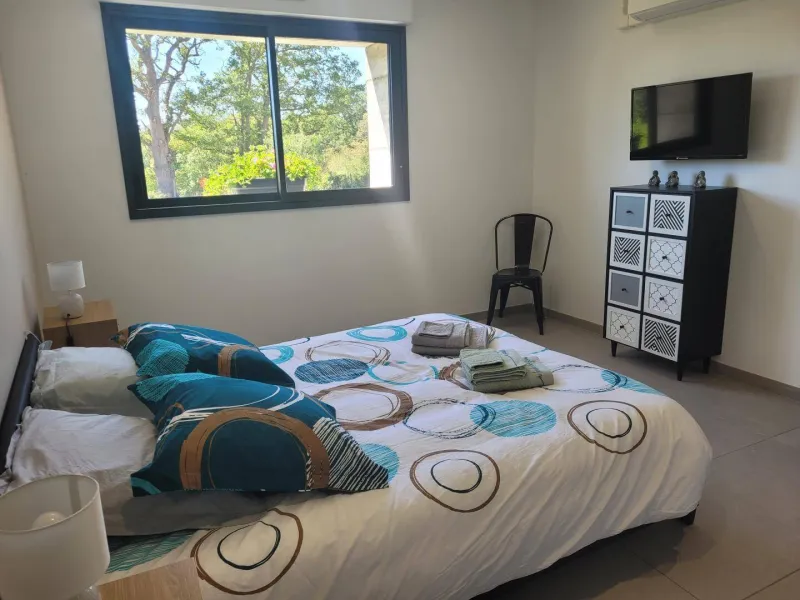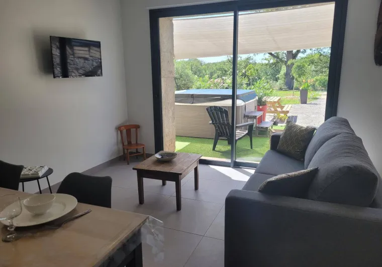 Vanessa welcomes you in an old sheepfold that she has carefully renovated for your comfort. This single-storey gite, adjoining a second one, with an indoor salt-water swimming pool (6x3 depth 1.50m), promises you good holiday memories. Bonus, the swimming pool is heated all year round, you can enjoy it in any season! The reversible air conditioning will be a real plus for the summer. Ground floor: Kitchen open to the living room. The living room has a sofa bed that can accommodate 2 additional people at the rate of 35 €/pers and per night. 2 bedrooms for 2 people, a bathroom (walk-in shower with seat / WC with grab bar) adapted for people with reduced mobility. The owner makes and sells homemade jams, syrups and fruit jellies on site with local products. The poultry farm is nearby. Bistro restaurant with evening concerts in Couzon 3km, museum micro-folies street art lurcy levisLocalisation