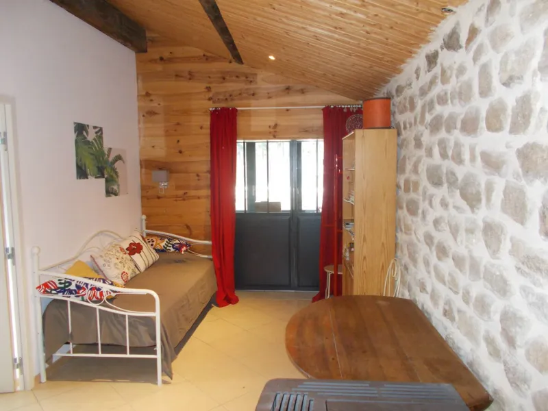 Il se compose d'une grande pièce à vivre (50m2) avec coin cuisine équipée, d'une chambre (12m2), d'une salle de bains/wc et d'un wc séparé. Entrée indépendante donnant sur un salon d'été. En extérieur, terrasse équipée et indépendante.Localisation