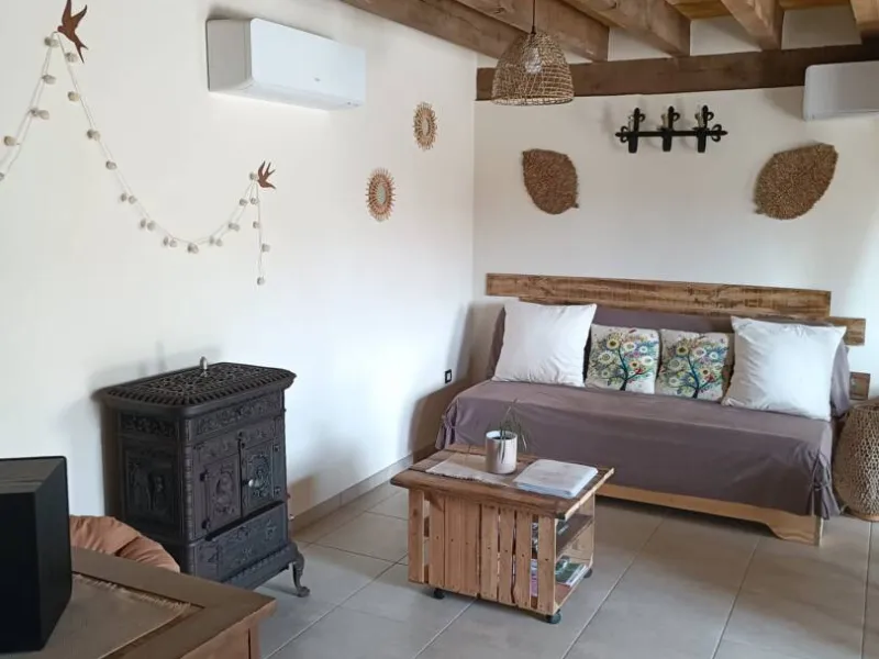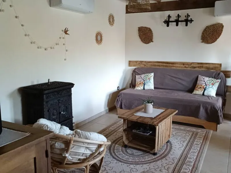* Le canapé gigogne dans le salon propose deux couchages : deux lits simples avec véritable literie (2×90).
