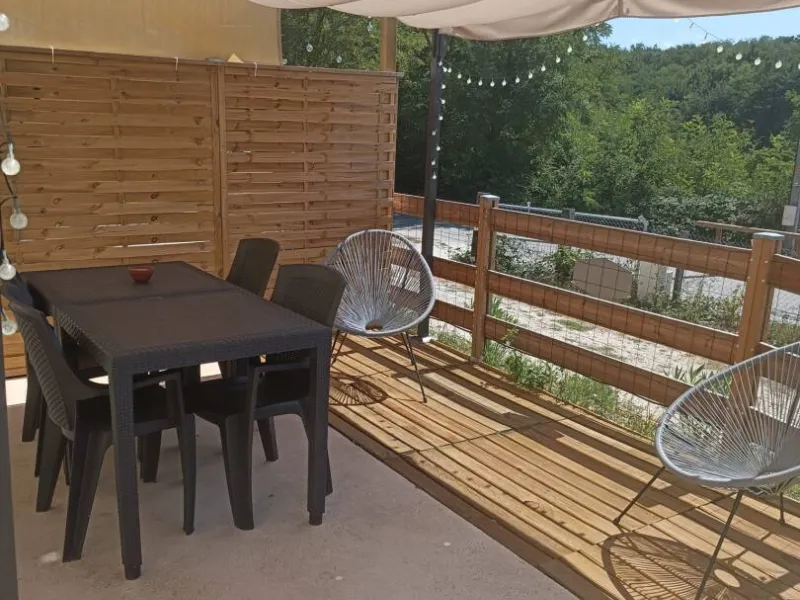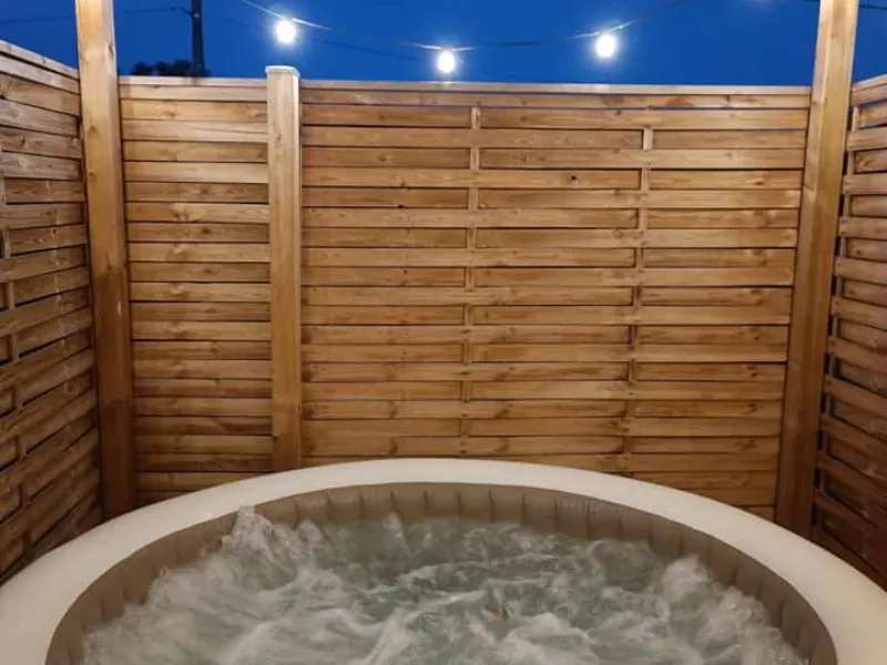 Le gîte est équipé d’une terrasse de 12 m² avec vue sur l’étang et d’un jardin de 50 m² entièrement clôturé. Vous pourrez vous détendre sous la pergola avec ses transats, ses fauteuils relax, sa table et ses chaises d’extérieures. Un barbecue à charbon vous permettra de déguster de bonnes grillades face à l’étang ! De mi-avril à mi-octobre, un SPA extérieur privatif au gîte est mis à disposition sans vis à vis.