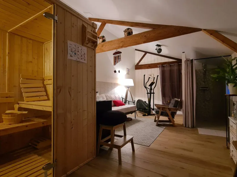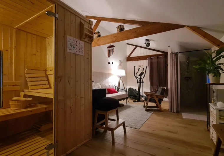 40 min from the Puy du Fou, 20 min from the Parc Oriental in Maulévrier, the 6-bed gîte "la cour aux tilleuls", rated 3*, welcomes you all year round. Housed in 1 renovated former school, the 110m2 gîte offers 3 bedrooms, 1 living room/kitchen, 1 mezzanine and 1 wellness room equipped with a Finnish sauna and 1 relaxation area.Open to all, the ground floor of the gîte, the garden, the courtyard and the courtyard are accessible to people with reduced mobility.