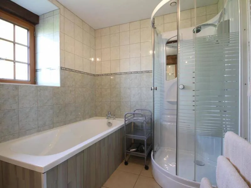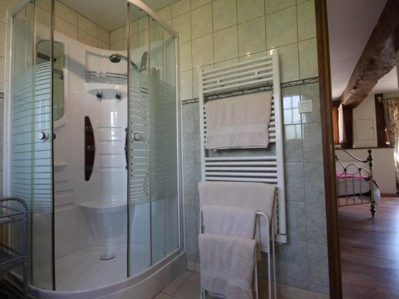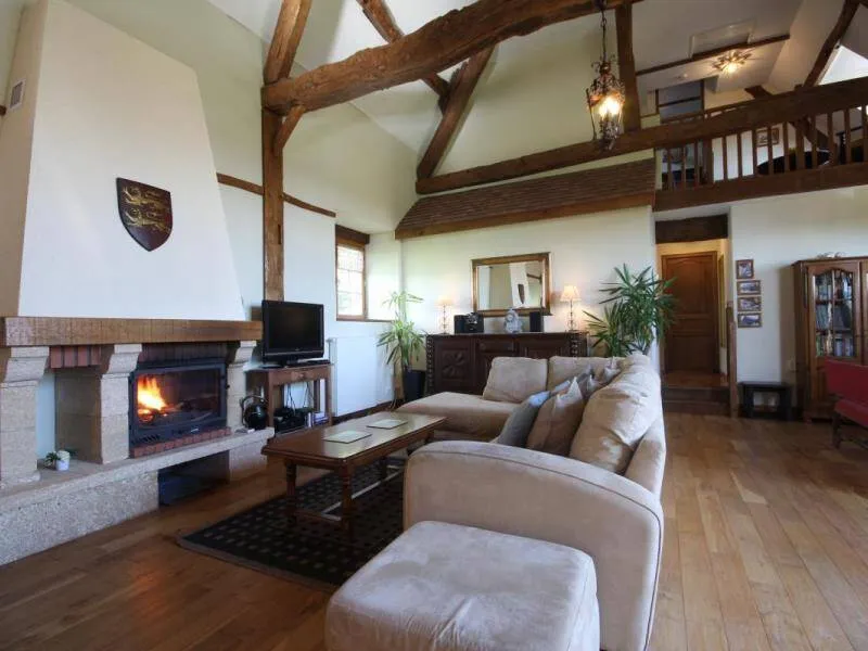 The impressive structure of this old press is beautifully highlighted. You will benefit from the comfort of this big cottage very close to the green way and the small city of character of Domfront.Old independent press near the owners. The swimming pool, jacuzzi, sauna and the garden are private for gests. Ground floor: living room (pellet insert, games console) with dining room, kitchen, bedroom (1 double bed) with private shower room / wc, bedroom (1 double bed 150 cm) with bathroom / Wc (bath and shower). Upstairs: bedroom (2 single beds) and bedroom (2 single beds) with shower room / wc. Floor by second staircase: landing with corner living room, room (1 double bed 150 cm) with room of water / toilet private. Central heating. Possibility dryer on request. Private terrace with gable without opposite. Access 2 hours included in the sauna in a barrel and in the outdoor Jacuzzi (supplement 30 € / 2 h beyond). Above ground pool heated from April to September, pétanque court, badminton, football and hockey.