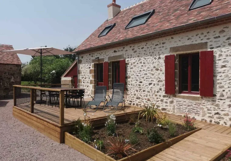 Le charme de l'ancien et le confort du moderne vous permettront dans ce gîte spacieux d'apprécier le bocage Bourbonnais avec vue sur les troupeaux charolais, tout en favorisant les retrouvailles familiales. Rez de chaussée : séjour spacieux avec cuisine à l'américaine, salle d'activités, salle d'eau (douche/WC), spa, chambre 1 labellisée tourisme et handicap (1 lit 2 pers.), salle d'eau (douche/wc privatifs). A l'étage chambre 2 (1 lit 2 personnes, 1 lit de 110, 1 lit bébé, 1 lit parapluie). Chambre 3 (2 lits de 80 jumeaux, 1 lit 1 pers). Chambre 4 : (1 lit de 120 et 1 lit 1 pers). Chambre 5 (2 lits de 80 jumeaux, 1 lit 1 pers).Localisation