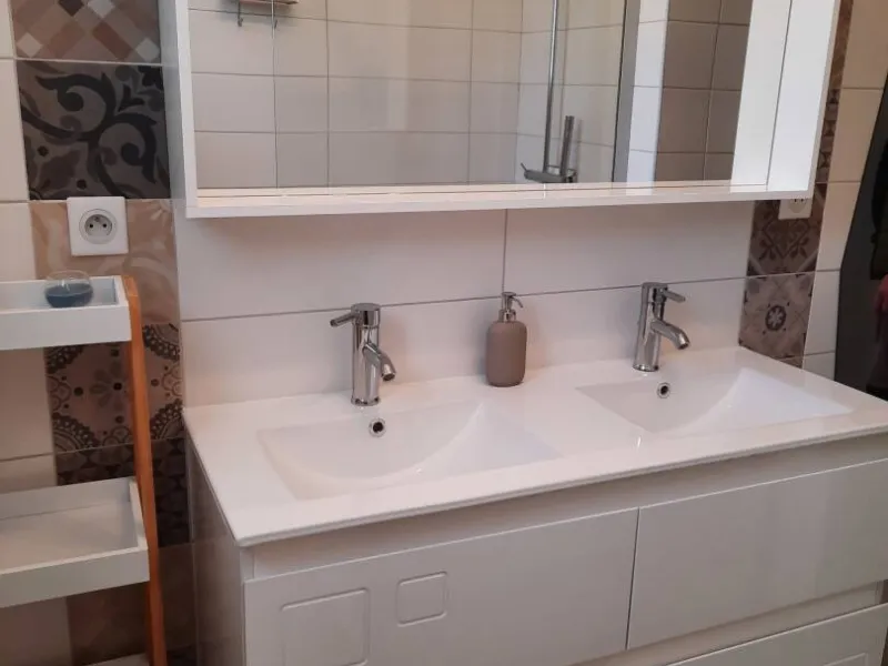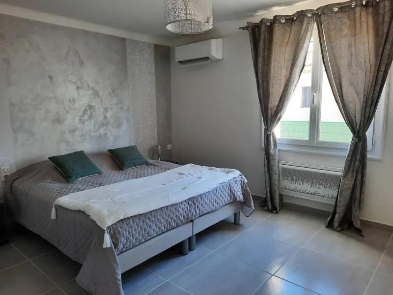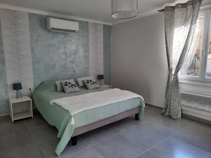 3 chambres climatisées (2 lits en 90x200, 1 lit en 160x190, 1 lit en 140x190, lit bébé). Salle d'eau. WC indépendant.