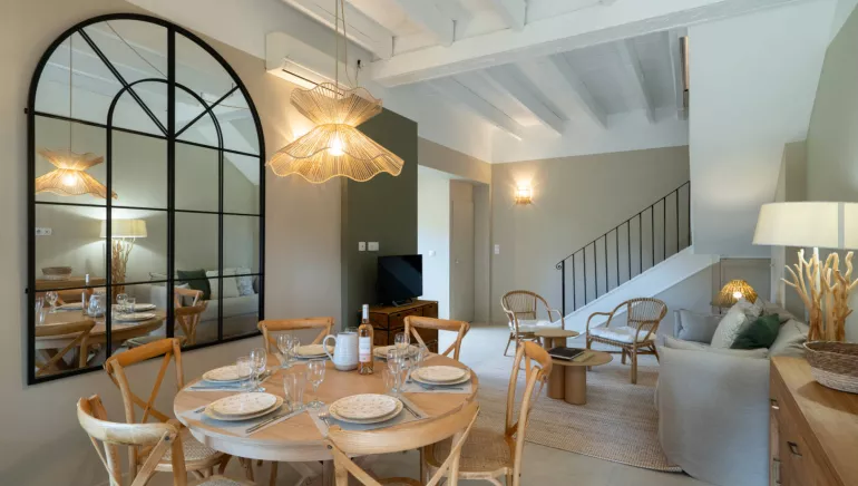 This cosy 3* duplex has a modern and warm living room, opening onto the south facing terrace and having direct access to the shared heated swimming pool.