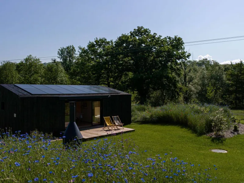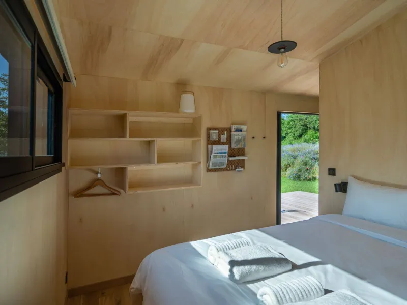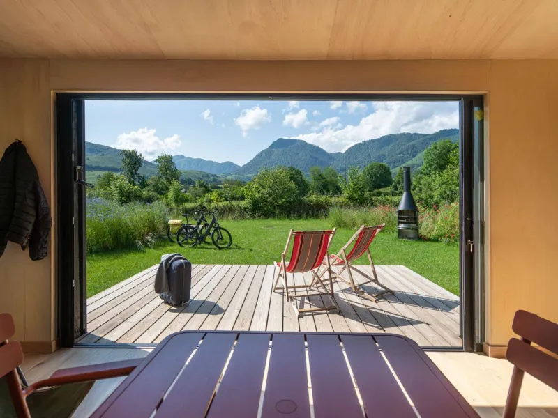 Surrounded by meadows, hills and peaks, our four K-banes (tiny houses) are located just a stone's throw from the river on the edge of Arette, a small village in the Haut-Béarn region nestled in the Barétous valley, on the edge of the Basque Country and in the heart of the Atlantic Pyrenees (64). Here, the mountains are grandiose and gentle, the lights are beautiful and the seasons are flamboyant. The elegant architecture and the pure lines of our K-bane fit soberly into a beautiful and generous nature. The deep black cladding made of burnt wood makes it a sober and precious object. This natural technique called Shou-sugi-ban (or Yakisugi), which consists of burning the surface of the wood, originates from Japan. A laundry room with washing machine and dryer is available, as well as a bicycle room. There is also a Nordic bath in the open air.Localisation