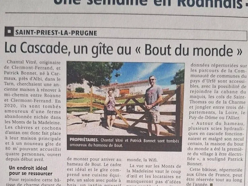 Discover this ideal cottage for 4 people, spacious and warm, offering optimal comfort with a surface area of 76 m² (ground floor + first floor). It includes a friendly living room with a sofa bed and wood stove, a fully equipped kitchen, as well as two cozy bedrooms equipped with a double bed 140x200 and two single beds 90x190. The modern and functional bathroom guarantees a comfortable stay. The whole, bathed in light, opens onto a 25m² terrace and a private garden ideal for relaxation with panoramic views of the surrounding nature. A vacation rental with nature and heritage in Saint-Priest-la-Prugne in the Loire! Hiking and outdoor enthusiasts will love this area! Gateway to the Bois Noirs massif, this area is a true paradise for mountain bikers and hikers. Discover the Puy du Montoncel, the highest point 12 km away, and let yourself be charmed by the local heritage: the 12th-century Romanesque church, the Peux viaduct, and the majestic Cascade de Bout are just 500 m from the cottage.Localisation