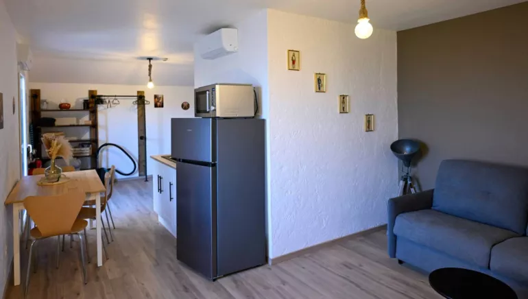 L'appartement Cheval welcomes you in a warm and modern setting, perfect for a stay with family or friends for up to 4 people. Spacious and fully air-conditioned, it offers all the comforts you need for a relaxing holiday. You'll enjoy private access with a terrace for relaxing, as well as all the facilities you need for a fully self-catering holiday. An ideal place to recharge your batteries and discover the region in complete tranquillity.