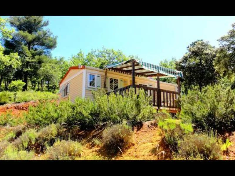 Prestige Chalet located in VVF in nature on six acres of oak trees, in the heart of the trails for hiking and cycling, near many villages provencaus, 3 km from the village, shared swimming pool (12 x 20), games for children, table tennis, sauna, game balls, rental bikes, animations. With terrace, nice quiet environment and beautiful view. 2 ch, 1 bed 160, 3 beds 1 pl. shower room, shower, washbasin. Independent WC. Kitchenette, vitro ceramic, dishwasher, fridge freezer, microwave multi functions. Living/sitting room, TV screen dish satellite, canal +. Wi-Fi connection. Rent bed linen and towels toilet. Communal laundry room, washing machine, dryer. Clim reversible.Localisation