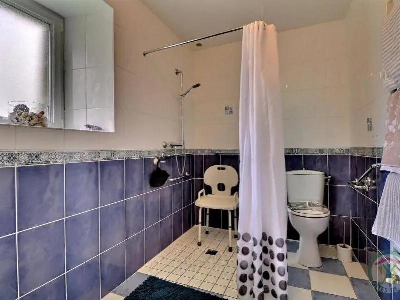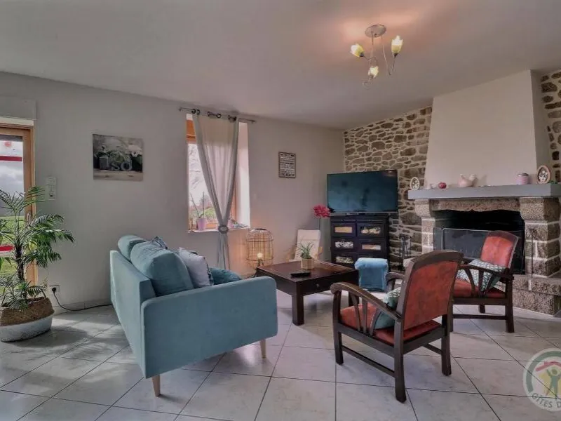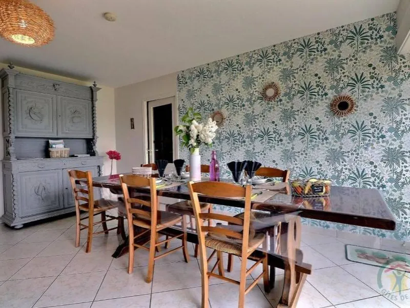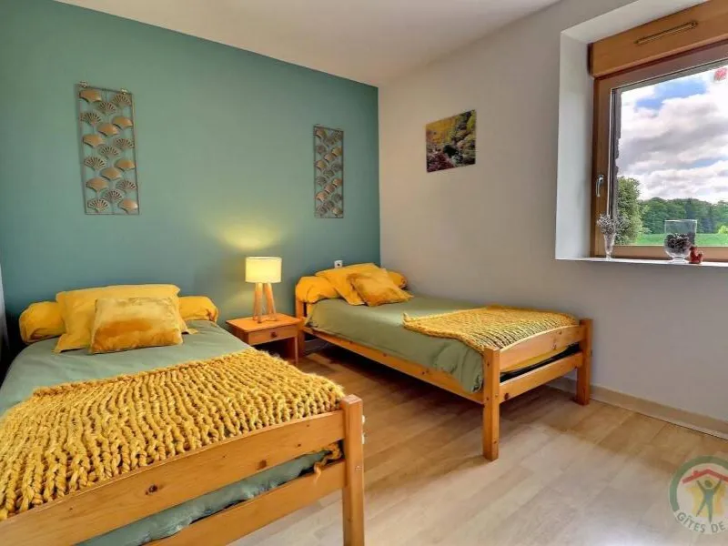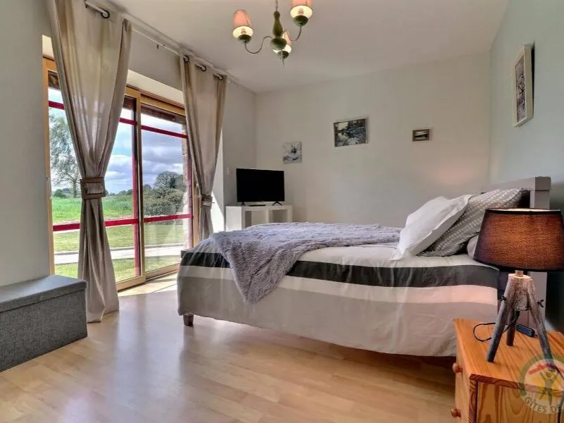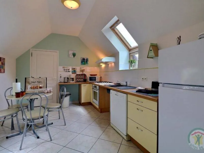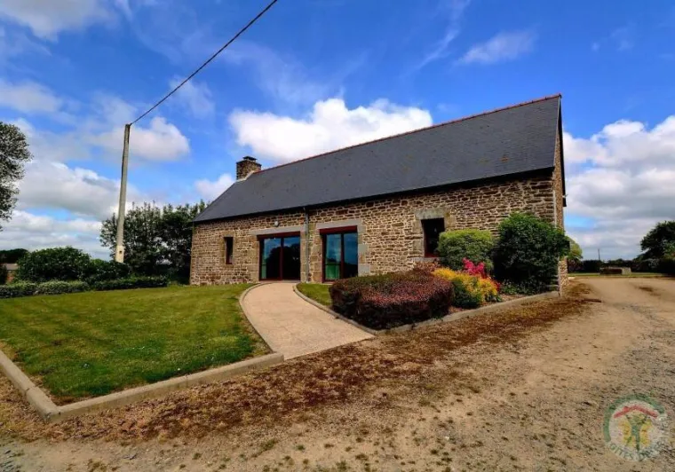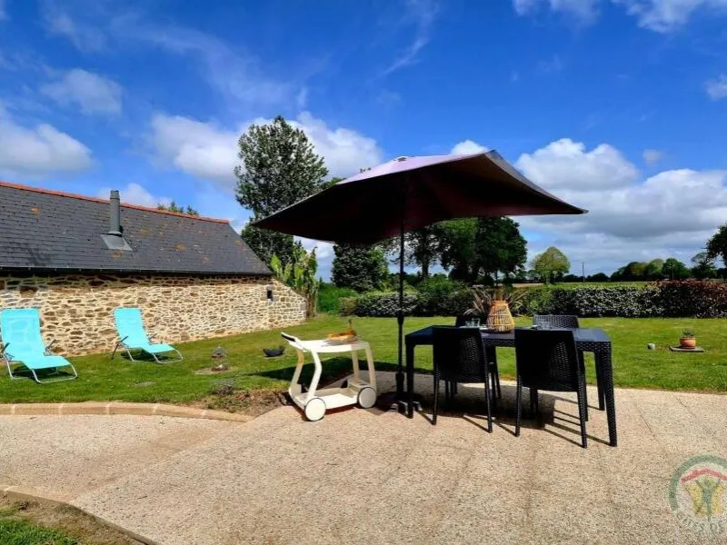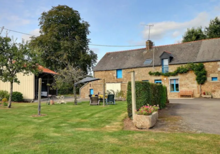 Single-storey gite, suitable for disabled people. GR.FL: Living room with lounge area (sofa bed). Fitted kitchen. Utility room. Bedroom 1: twin beds. Bedroom 2: double bed. Shower room. WC. Oil-fired underfloor heating. A stone-built house in a quiet, leafy setting close to footpaths and the Parc Floral du Chatellier. It has a lawn with patio, barbecue and garden furniture. Village 3km. Fougères 13km.Localisation