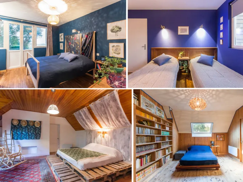 2nd floor: reading area with library, sofa, music, children's play area with lots of toys. 1 large through bedroom with 1 x 180cm bed, 1 chest of drawers. 1 bedroom with 1 x 90cm bed and 1 x 140cm bed, 1 cot and changing table, large wardrobe and bookcase.