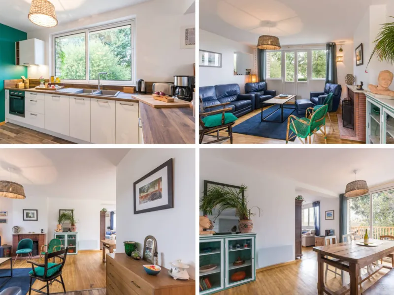 Second floor: fully-equipped kitchen (dishwasher, oven, 3-burner induction cooker, fridge-freezer, microwave, filter coffee maker, Senseo, toaster, kettle, blender, pressure cooker), living room with 1 sitting area with sofa, armchairs, fireplace and balcony with sea view, 1 dining area with large farm table, bench and chairs, 2nd sitting area with sofa, flat-screen TV, DVD player and numerous DVDs (HDMI cables and USB port). Direct access to terrace from living room. 1 bedroom with 2 90cm beds, wardrobe and hanging space. 1 bedroom with 1 x 160 cm bed with balcony and sea view, chest of drawers and closet. 1 bathroom with walk-in shower and 2 basins, hairdryer and towel warmer. 1 separate WC.