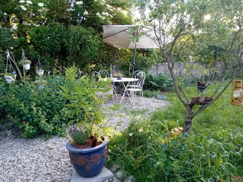 Le jardin clôturé, très vert et ombragé, vous offrira de merveilleux moments de détente avec son coin repas et ses transats.