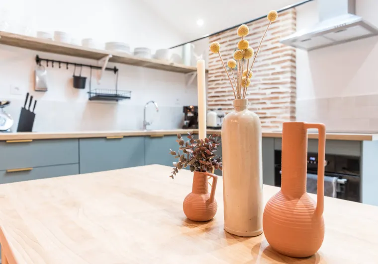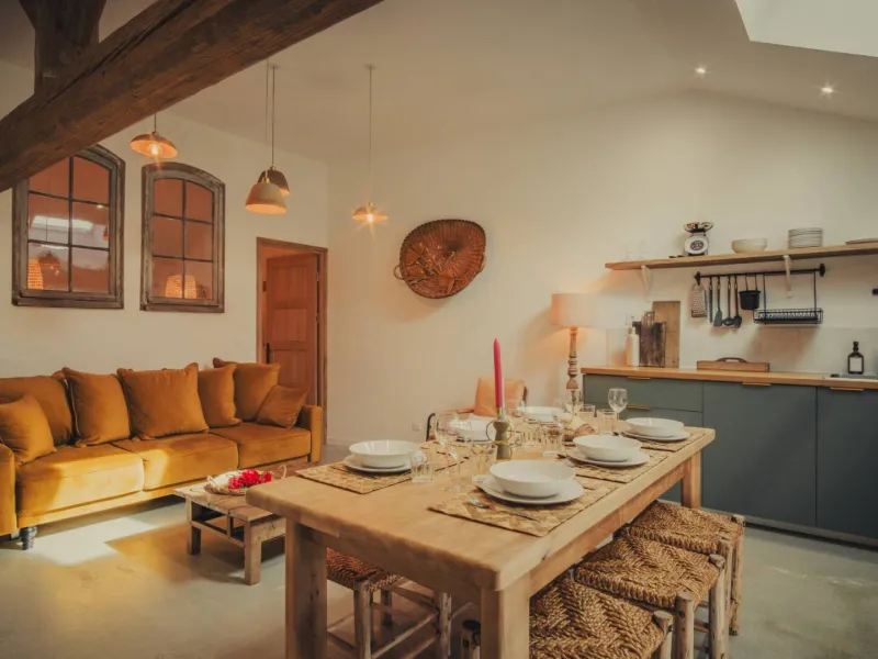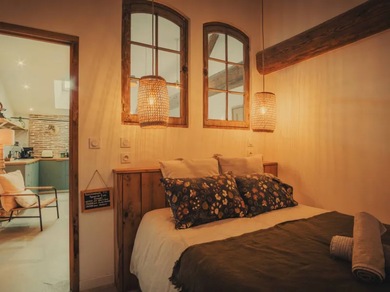 Nous avons œuvré dans le respect de l'existant en conservant un maximum d'éléments d'époque (poutres, briquettes) tout en améliorant au maximum le confort de vie de l'hébergement (isolation, chauffage, ameublement de qualité, cuisine, etc...).