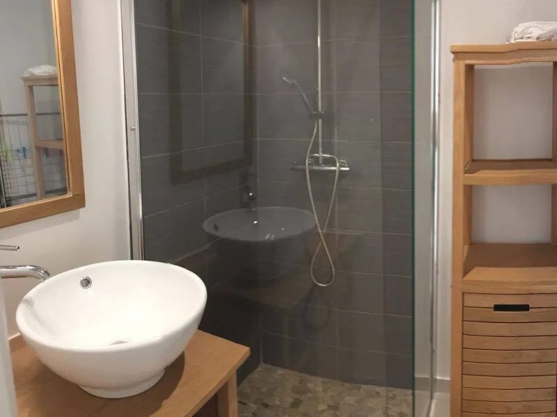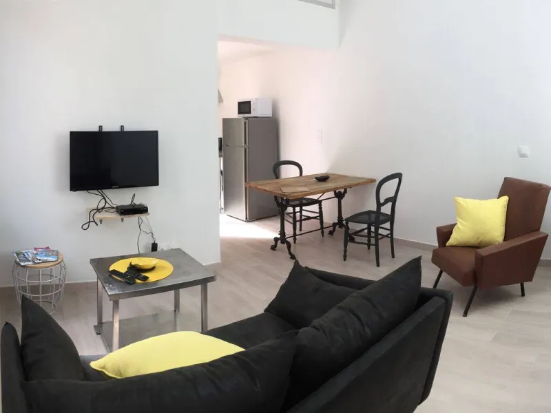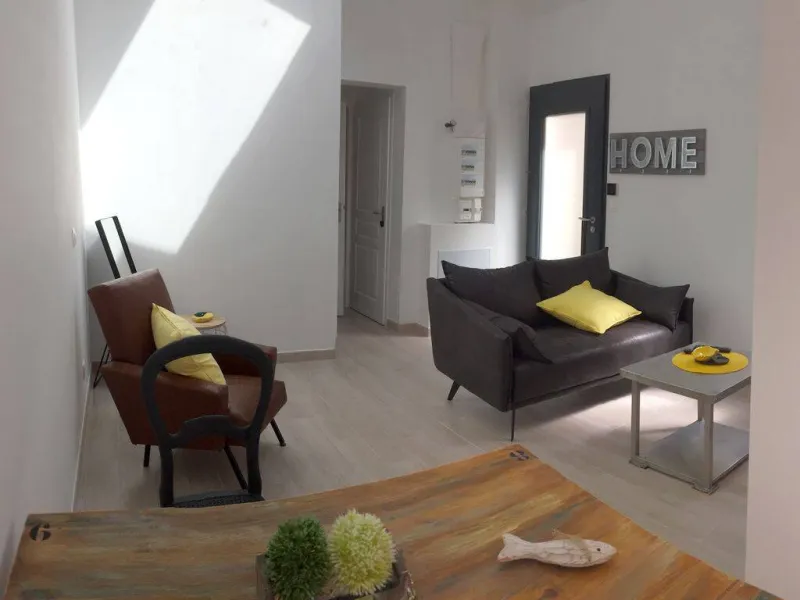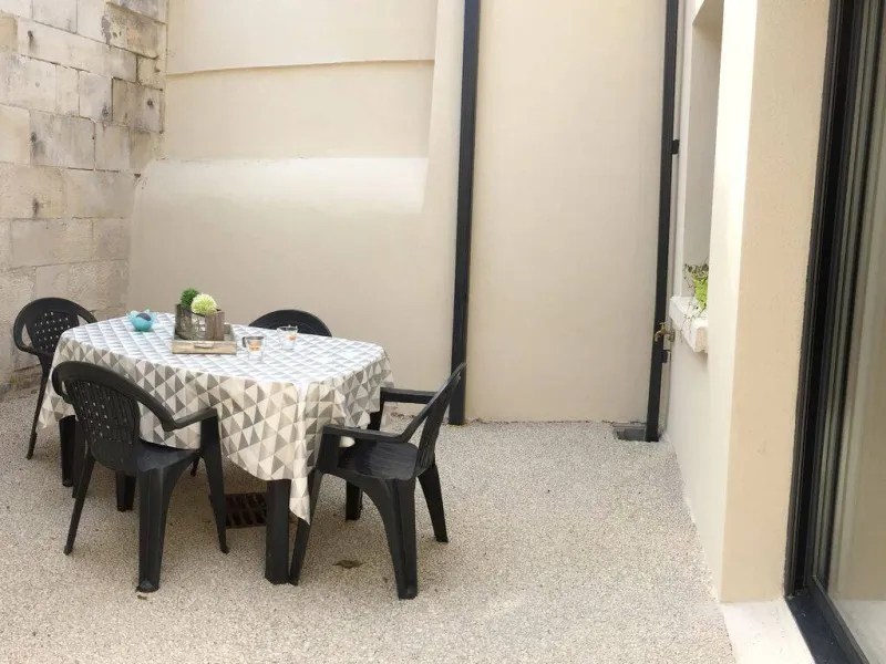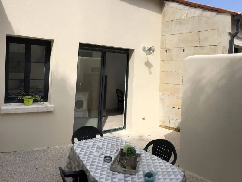 Petite maison de plain-pied en rez-de-chaussée, au fond d'une venelle typiquement charentaise, dans un ensemble résidentiel entièrement rénové. 2 pièces, 36 m² : salon/séjour, cuisine américaine, 1 chambre (1 lit 140), 1 chambre mansardée (2 lits 90), salle d'eau, WC séparés. Pad pour velux électrique à détecteur de pluie et stores occultants. Patio privatif et clos. Abri vélos couvert commun. Linge de lit et toilette, forfait ménage en supplément. Matériel bébé gratuit. Stationnement gratuit dans la rue. En centre-ville, proche des thermes, transports et tous commerces.Localisation