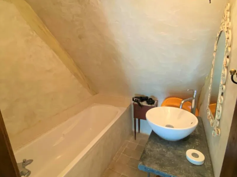 The bathroom has a bathtub for Flaubert and a shower for Maupassant.