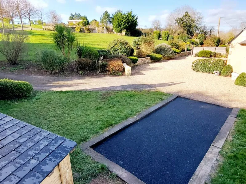 Petanque court and enclosed bicycle garage.