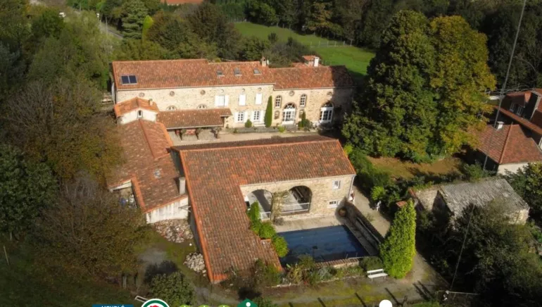 Independent gîte near the owners'. Gr. fl.: living-rm-cum-kitchenette. 1st fl.: 2 bdrms (1 double bd, 2 single bunk bds), baby equipment, shower rm and WC. Reversible air condition. Washing mach., micro-wave, freezer, TV. Courtyard, car shelter, garden table & chairs, BBQ, bikes, swimming-pool at the back of the gîte, shared with the owner. A.N.A. Bed and house linen supplied, cleaning service. Ping-pong Situated in the outbuildings of a traditional main farm building, this small stone gîte at the foot of the Montagne Noire is at 200 m from the green pathway Mazamet-Bédarieux, at one hour from the Languedoc beaches and close to the large Monts de Lacaune lakes. It will charm lovers of traditional bu