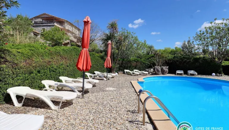 Swimming pool (18x6m) with 2.5m diving pool and paddling pool for children, open May to September. Enclosed parking area. See availability and special offers on owner's website. Washing machine shared by 2 gîtes (extra charge). 3 other holiday rentals on site.