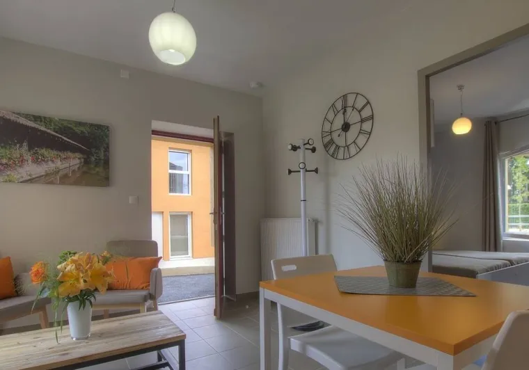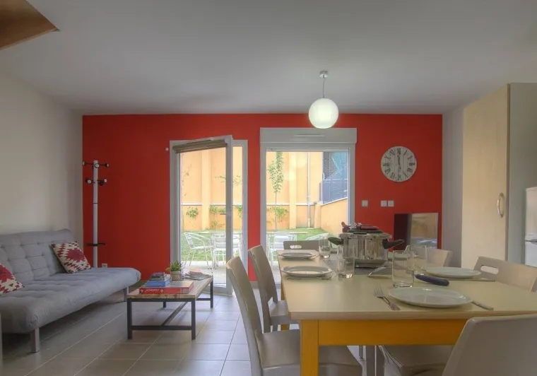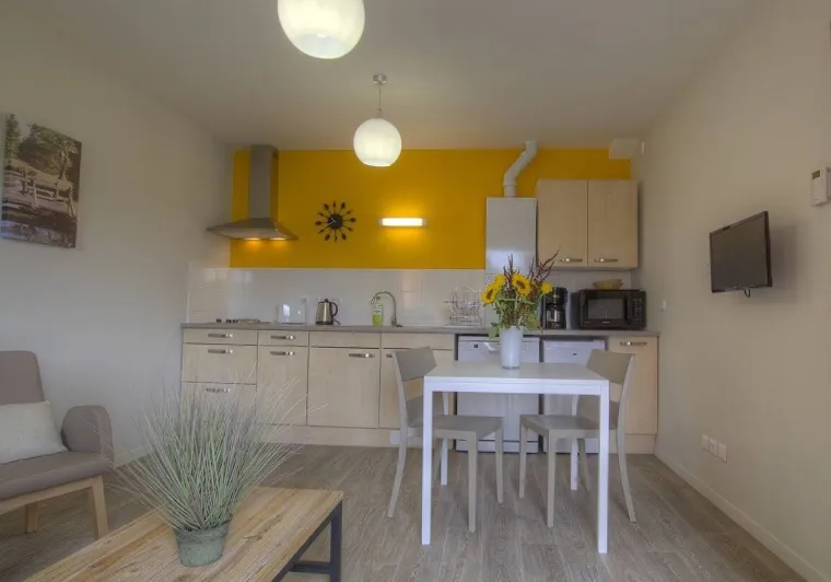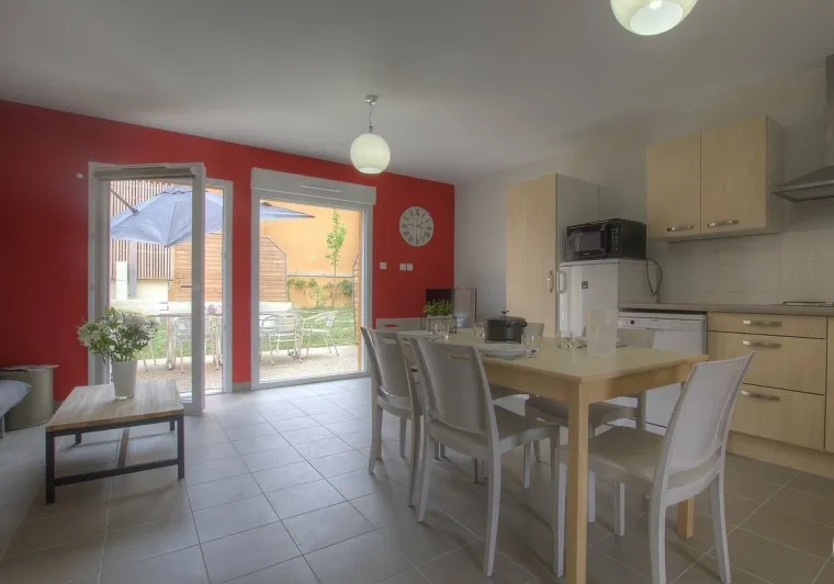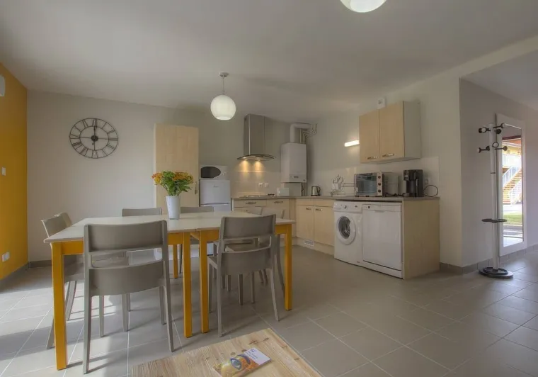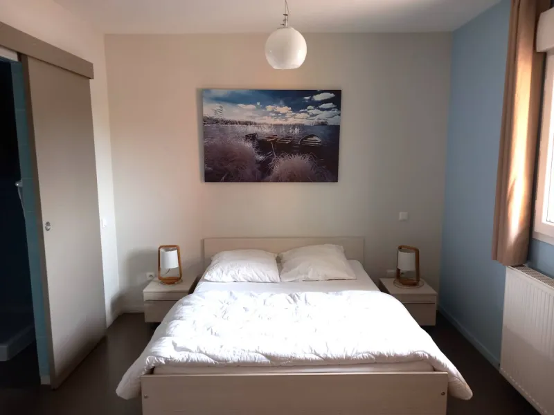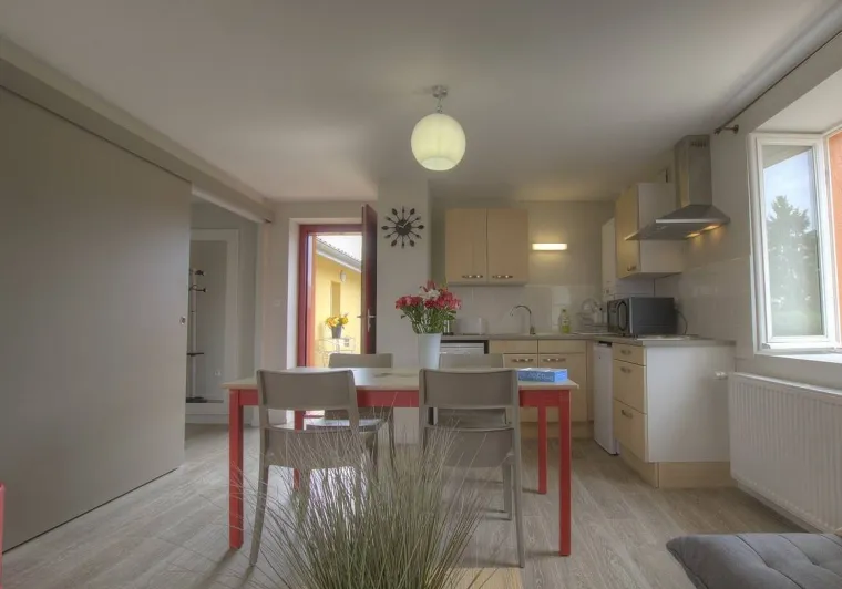 On left bank of river Saône on border of the Dombes, Beaujolais, Bresse and southern Burgundy regions. Gîtes with every modern comfort for a relaxing and congenial holiday. Le Moulin 2 is a recently created gîte on upper floor of reception building, accessed via wide outside staircase. Light & airy lounge/kitchen leading to bedroom (2 single beds), shower room, separate WC. South-west facing, modern décor and facilities. Little balcony.Localisation