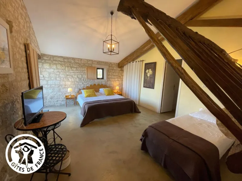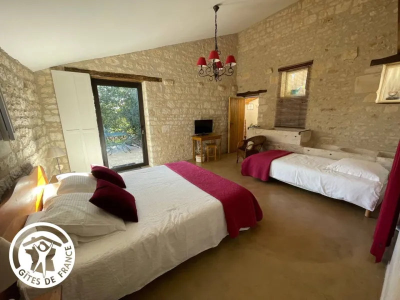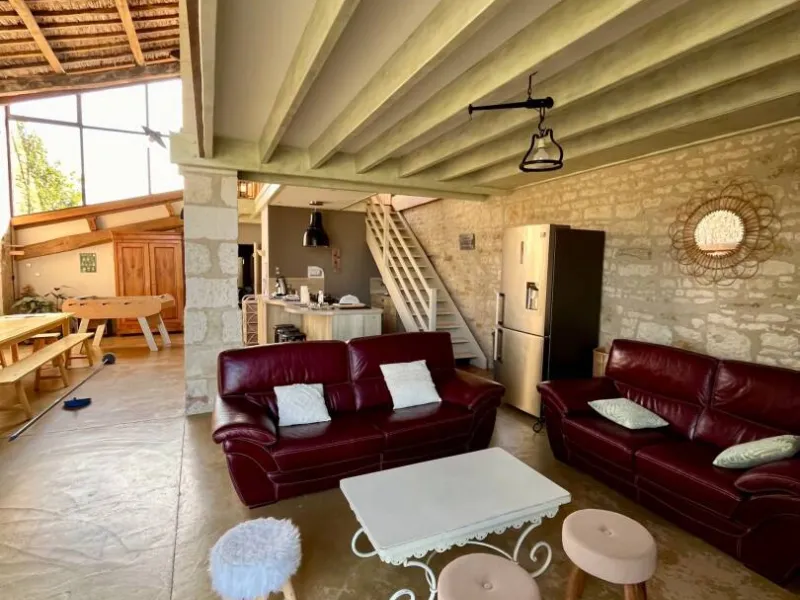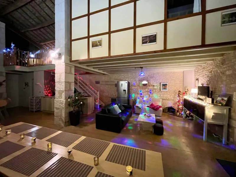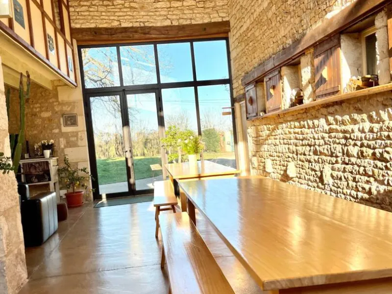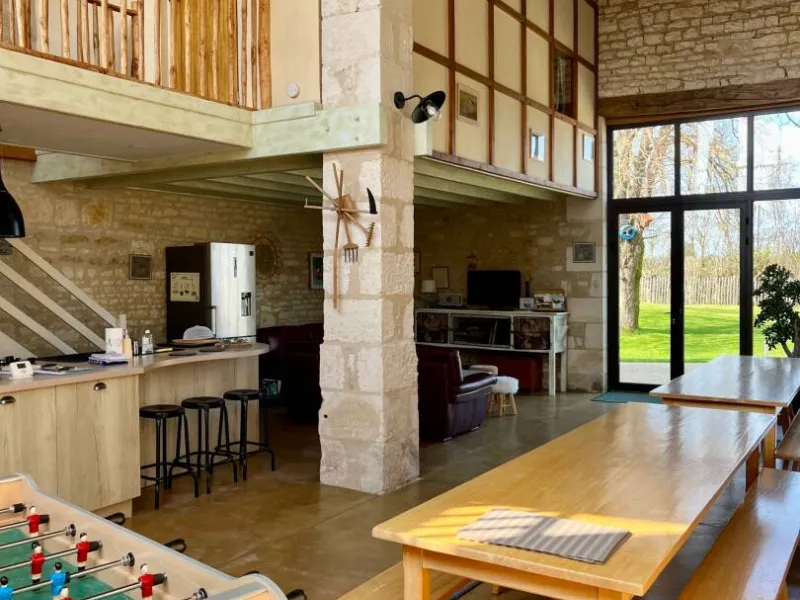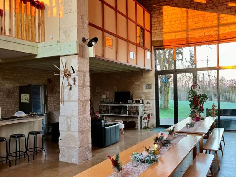 Gîte in an old renovated barn, adjoining the owners' house, situated in a 3500 m² property in the heart of the Venise Verte, close to another gîte. The ground floor comprises a large living room/lounge/kitchen, 2 bedrooms (1 x 160cm bed + 1 x 90cm bed) (2 x 90cm twin beds + 1 x 90cm bed), each with its own private shower room and separate private WC, and an additional separate WC. Upstairs, a mezzanine with a relaxation area (games, books) and 1 bedroom (1 double bed) with its own private shower room and separate private WC. Free Wi-Fi.Outside: 2 private terraces (garden furniture) and a stone barbecue area. Shared with another gîte and the owners: car park, large enclosed garden with swimming pool (5x10m) open from 01/05 to 28/09 heated by geothermal energy (minimum 24° and if outside temperatures exceed 20°) and enclosed by a safety barrier (with opening/closing times to ensure cleanliness and hygiene), children's play area, petanque area, adult bikes (baby seats available), rowing boat available (life jackets).