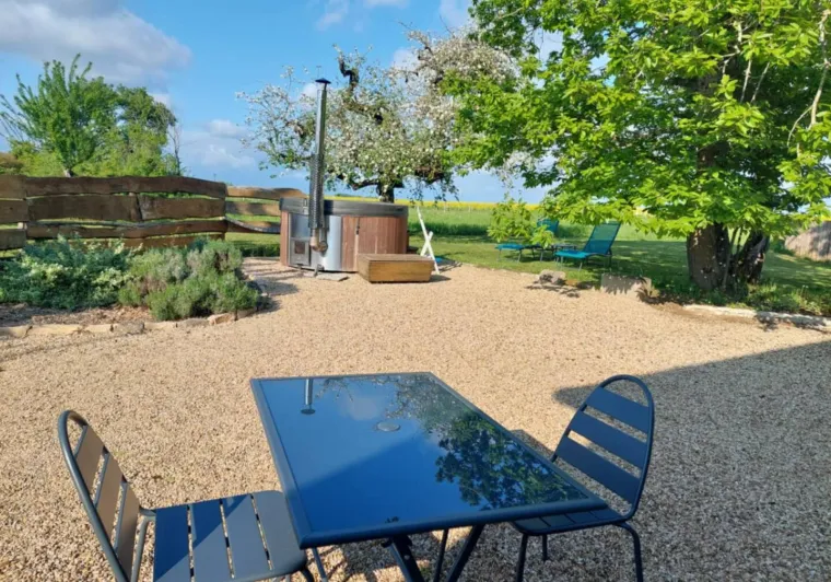 Just 15 minutes from Beaune and the Route des Grands Crus, set between fields and orchards, this outbuilding boasts every comfort: Italian-style shower in Burgundy stone, 160*200cm bed, large outdoor area... and its Nordic bath, heated over a wood fire, so you can enjoy the garden and surrounding countryside in all seasons.To complete the experience of Burgundy in the fresh air, we hire out electrically-assisted bicycles and will be happy to share the beautiful roads with you.