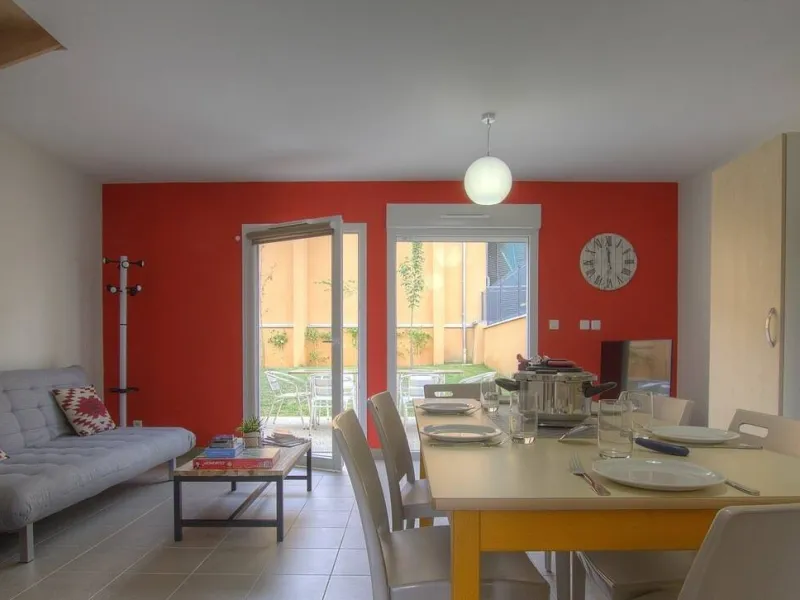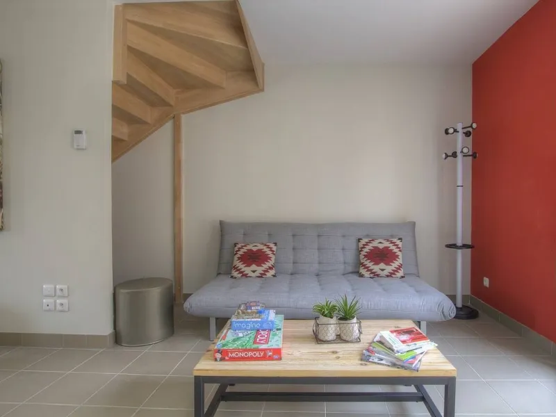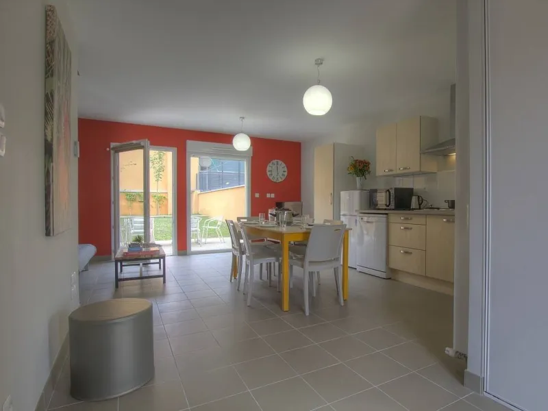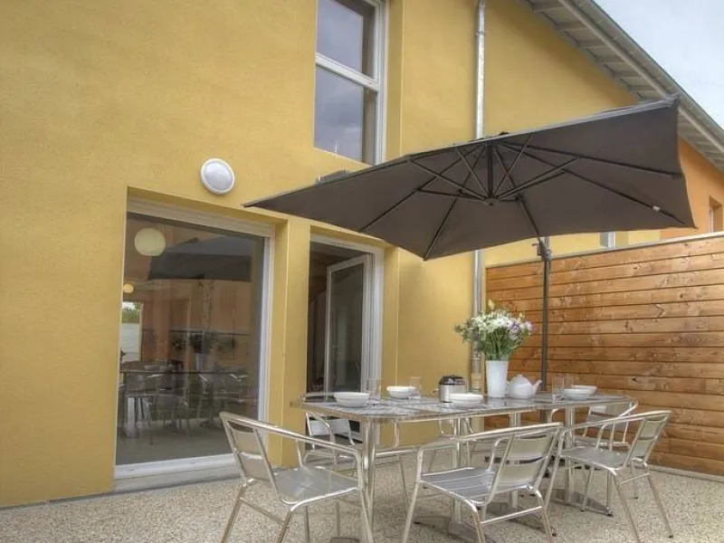 On left bank of river Saône on border of the Dombes, Beaujolais, Bresse and southern Burgundy regions. Gîtes with every modern comfort for a relaxing and congenial holiday. Each of these four gîtes (approx. 70 sq.m.) are on 2 levels, with entrance on ground floor, modern décor and facilities. Ground floor: shower room, separate WC, large light & airy living room (double sofa bed) with open-plan kitchen opening onto private terrace. 1st floor: 2 bedrooms (double bed) (2 single beds), each with large closet.|Terrace (table, chairs, large sunshade) ideal for al fresco dining in sunny weather! BBQs shared by all gîtes.Localisation