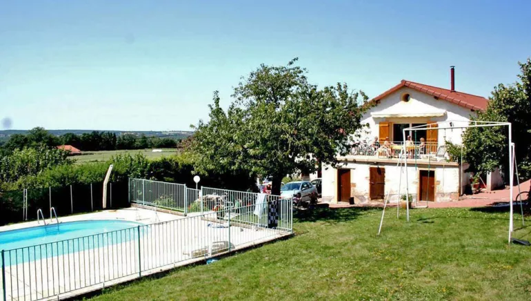 Gîte de 75 m² sur rez-de-chaussée surélevé, salle de séjour avec baie vitrée donnant sur la terrasse 20 m² et la piscine, poêle Godin, 2 chambres. Chauffage central. Parking. Planning de résa sur le site du propriétaire. À proximité de la chambre d'hôtes 3720. Gîte dans une ancienne fermette avec piscine sécurisée (10mx5m) ouverte de mai à octobre et terrain : 600 m² cour et pelouse, tilleul pour ombre, portique végétalisé..., communs avec le propriétaire et la chambre d'hôtes située dans la même maison, vous profiterez de notre belle région aux confins du Pays Charolais et Brionnais célèbre pour ses églises romanes. Promenades variées dans les bois, au bord de la Loire ou du canal, visites de villages et dégustation de produits du terroir. Proximité de la Véloire voie verte du département qui vous mènera de Vougy jusqu'au port de Roanne ou Iguerande ou Charlieu