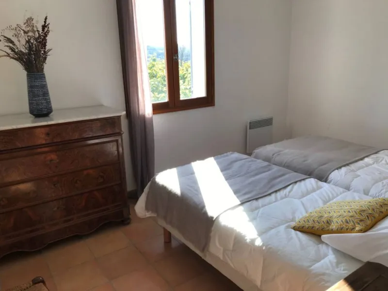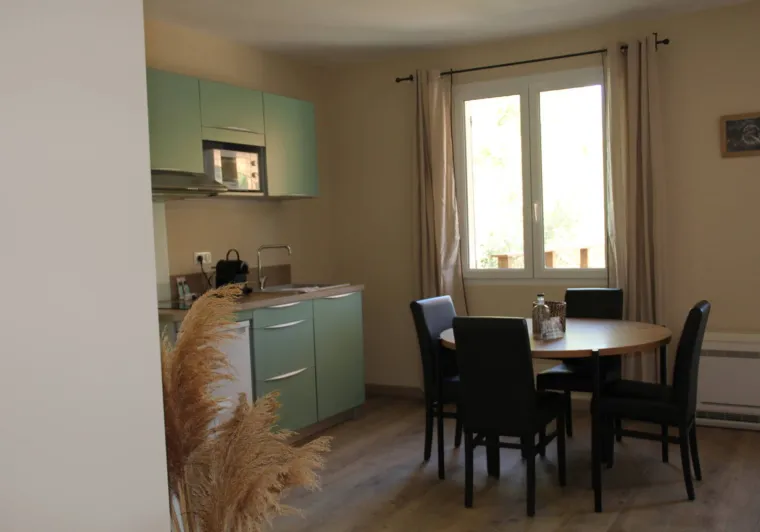 Very spacious (95 m2 for 6 people) and air-conditioned, this gîte features a large living room with open kitchen, laundry room, 2 separate toilets, 3 bedrooms (one with en-suite shower room) and bathroom.
