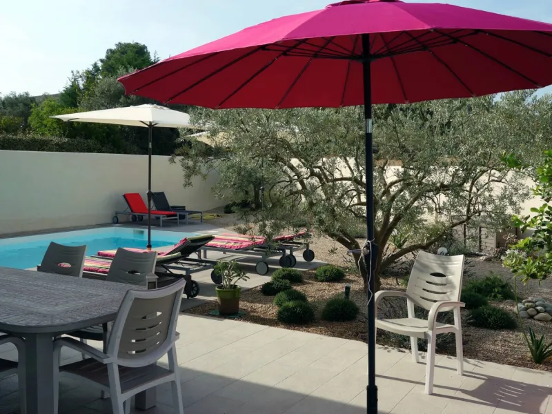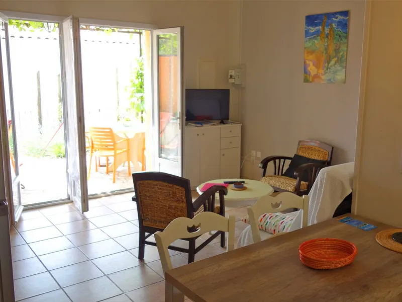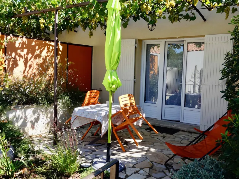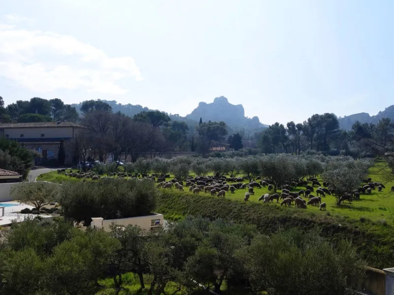 The three two-person gîtes are ideally situated at the start of the hiking trails, 2 minutes' walk from the historic sites and 5 minutes from the town centre. Private terrace with flower garden. You can have lunch in the shade of the trellis with a view of the olive trees and the Alpilles or enjoy sunbathing by the pool. The place is very quiet but not isolated. Nadine and André will be happy to help you discover their beautiful region. All the comfort for two. The kitchen area is new and well equipped (fridge-freezer, oven, induction hob, etc.). Good king size bedding, private parking. Sheets and household linen are included.Localisation