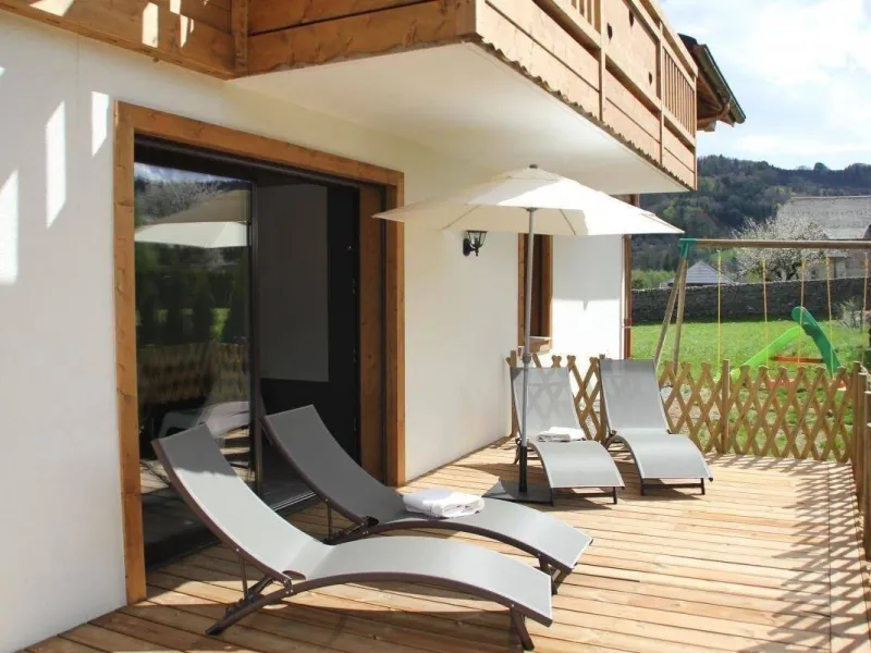 Ideally located halfway between the Grand Massif and the Portes du Soleil, this 36m2 gite is on the 1st floor of a house that also includes 4 other gites. On-site facilities: indoor pool (34°C), jacuzzi, fitness center, steam room, sauna, body treatments. In the Gite: fitted kitchen opening onto living room (Rapido 2-person sofa bed), bedroom (1 bed 140), shower room with WC. Elevator access possible. Balcony/terrace with furniture. Bed linen and towels provided. Shared ski room with washing machine. Parking available. Breakfast available on site. Ski in Morillon 6km, Les Gets 12km, Samoëns 13km, Praz-de-Lys 14km. Taninges village center 800m away. Short-stay rates available (minimum 2 nights).Localisation