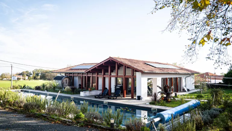 In fact, Matthieu has decided to call his gîte Ursuya. It's in the middle of a beautiful wooded estate. The park covers an area of 7000 m2, with a swimming pool in the center. This charming apartment combines the old and the new, giving it a very special character.