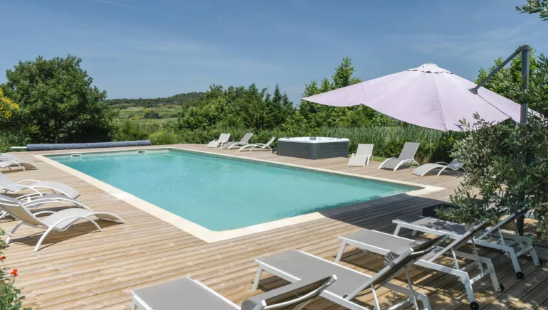 Ideally located between Mont Ventoux and the Luberon, the mas offers 450 m² of generous living space, fully equipped and carefully decorated so you feel right at home. It features 3 suites with queen-size beds, 2 bedrooms with queen-size beds, 2 twin bedrooms with two single beds, 1 suite made up of three separate areas each with a single bed, as well as one bedroom with a double bed (140 cm) and a mezzanine with two single beds.