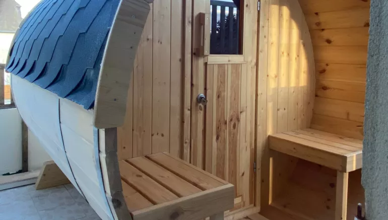 - Barrel sauna on outdoor terrace upstairs.