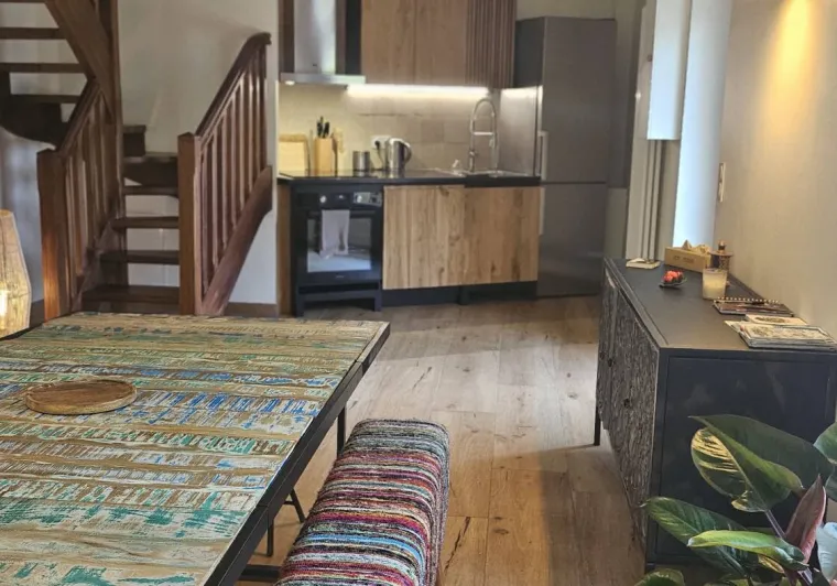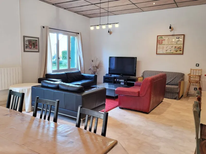 Le Duplex de la Longère: family accommodation with two couples' rooms and a junior dormitory, a bathroom, two washrooms, a living room with kitchen area, a terrace.