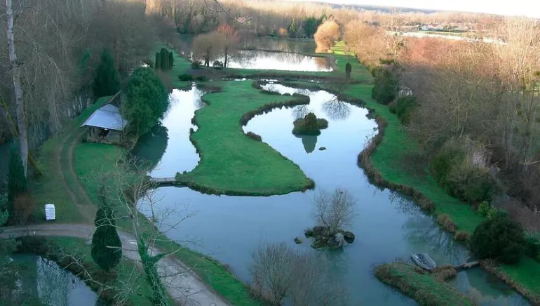 An unusual wood cabin on the edge of the water with a small kitchen and seperate bathroom, for a 100% glamping-style holiday for 1 to 4 people:
