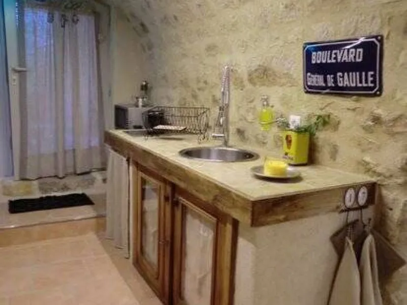 J'ai utilisé pour sa création les fondations de la maison - anciennes caves aménagées en pièces voutées - où se dégagent à l'intérieur les énergies de la pierre, du métal et du bois.La chaleur d'un éclairage aux multiples couleurs réchauffe ce lieu. Défini par son style singulier - moderne et ancien - mon intention étant de donner un sens à chaque objet, chaque tissus, chaque mobilier. coin cuisine, salle d'eau ouverte, coin salon et couchage 2 personnes.