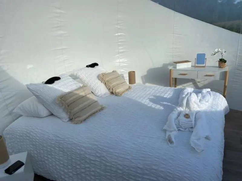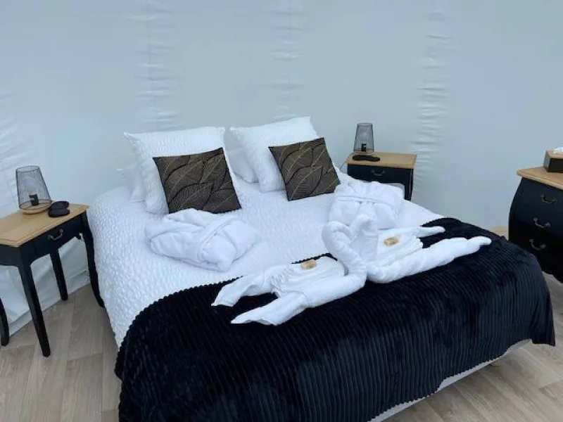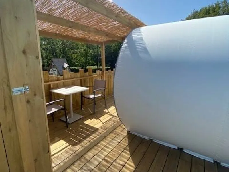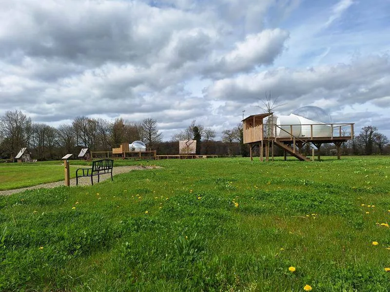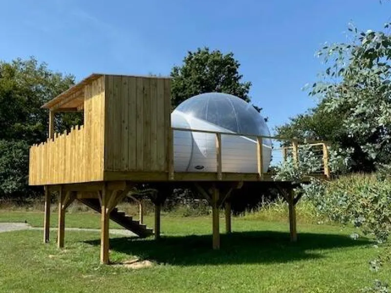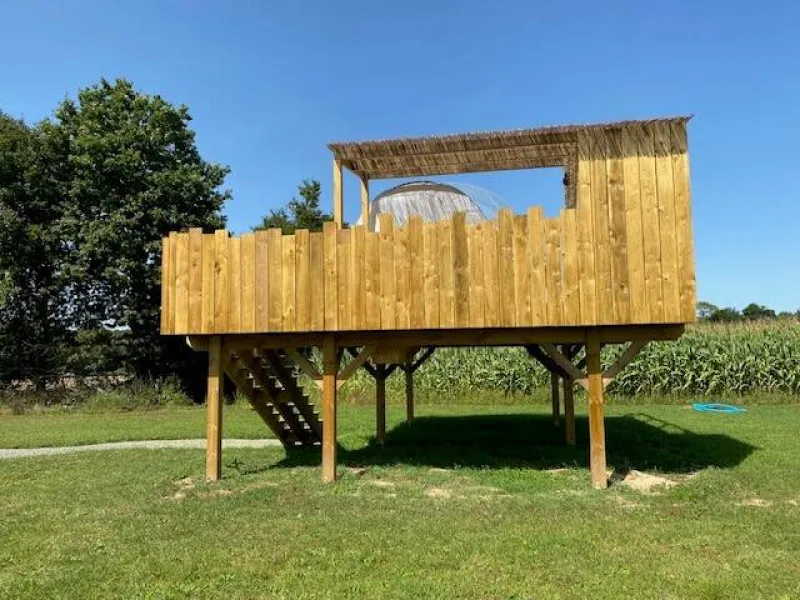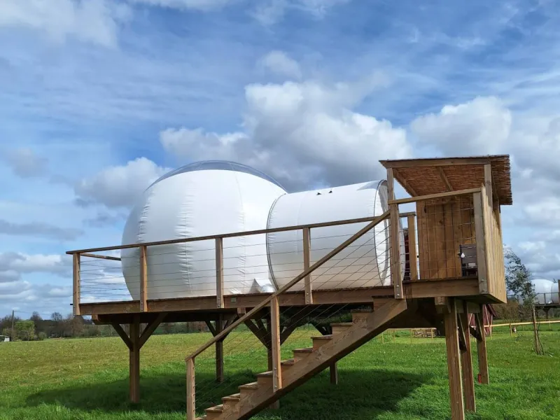 Sophie welcomes you to a fully restored estate for an unforgettable experience. For one night (or more!), come and recharge your batteries and sleep in a life-size bubble! With all the comforts you need, you can sleep under the stars without feeling too cold or too hot all year round. In this cocoon, you'll enjoy an original experience over 2 metres high, with a breathtaking view of the surrounding countryside. A moment out of time for you and your partner, guaranteed to get away from it all!. Wooden terrace on stilts 2 metres high