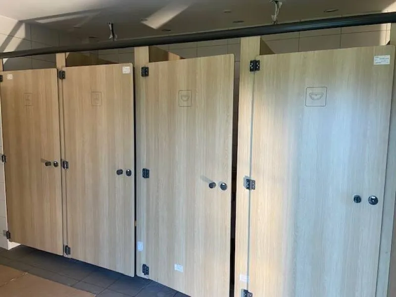 - Nearby main building with showers, washbasins, WC and adapted PRM area.