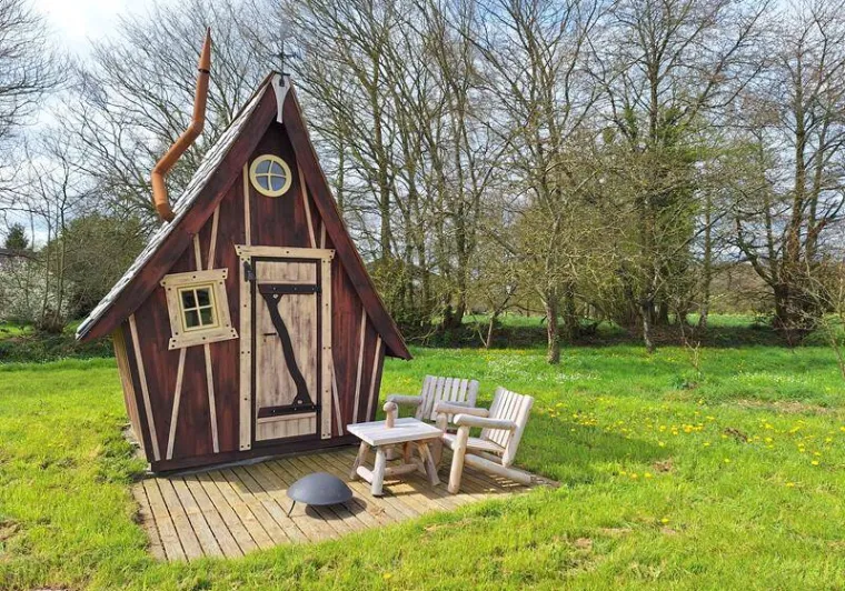 On her estate in the heart of Brocéliande country, Sophie offers you an original experience: sleep in a korrigans' hut!This little cabin looks like it's straight out of a fairytale and will lull you into the magic of Brocéliande! The two of you will sleep in a cosy cocoon and enjoy the outdoor terrace.