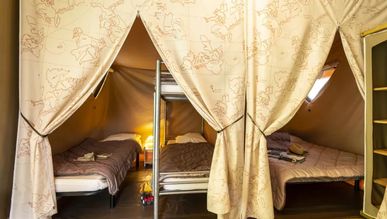 Idéales pour 5 personnes, les tentes Canada sont situées sur de grands emplacements, bien ombragés, et proche du sanitaire du camping. Les tentes Canada sont équipées pour un confort maximal, tout en ayant les sensations du camping.