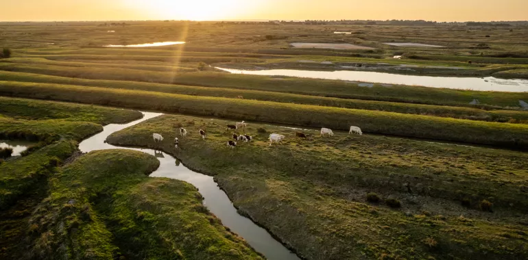 Laissez-vous happer par l’immensité du Marais Breton Vendéen ! Cette étape de votre aventure vers l’île de Noirmoutier vous conduit des terres maraîchères de Machecoul vers le rayonnant marais. Après l’étang de Machecoul, les villages de Fresnay-en-Retz et Saint-Cyr-en-Retz, l’air marin vous taquine les narines bien avant d’arpenter les salines et de rejoindre le port du Collet, frontière naturelle délimitant les départements de Loire-Atlantique et de la Vendée. En longeant l'océan, si possible par vent arrière, après quelques kilomètres, le port des Brochets et Bouin se détachent du marais.