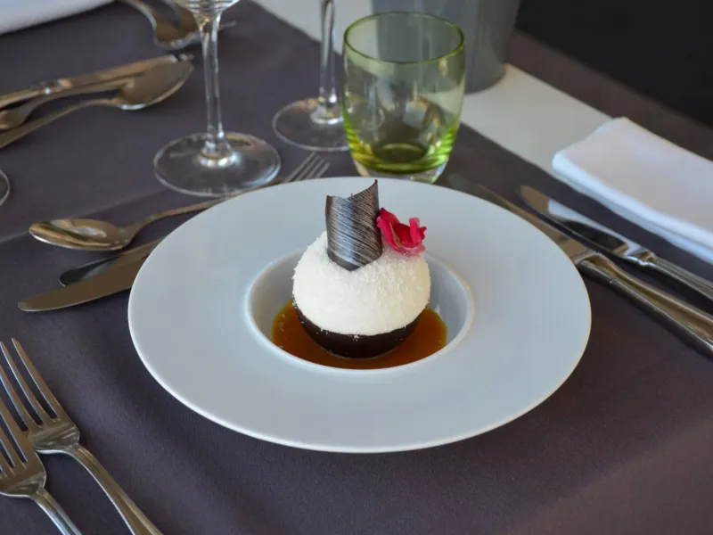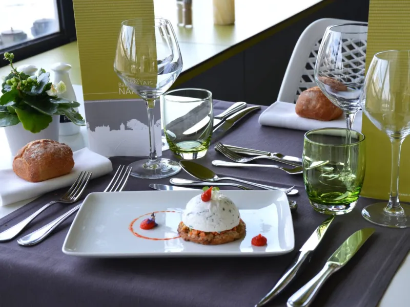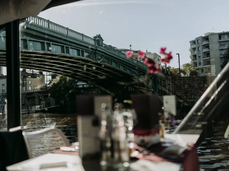 On a restaurant cruise, you can choose between lunch and dinner. The cruise lasts 2? hours, allowing you to make a return trip to Nantes and Sucé-sur-Erdre. On Friday and Saturday evenings, an orchestra provides musical accompaniment to the meal. The menu is devised by our chef using local, seasonal produce. It changes three times a year. Alternatives are available if you notify us of your allergies before the cruise. The food and wine pairings are made with the help of the Vignes de Nantes association. It highlights the products of the Nantes vineyards, such as Muscadet.