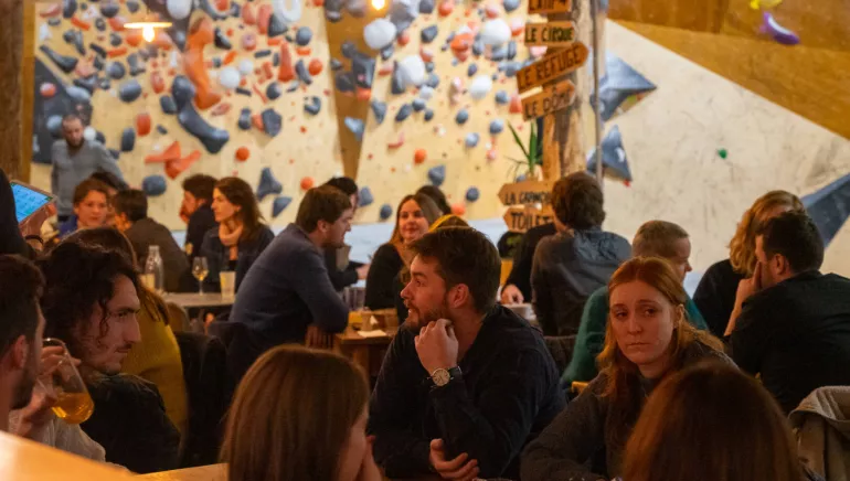 Push open the door and you'll find a climbing gym, a bar/restaurant, a health/well-being area (yoga, sophrology, osteopathy), a co-working space, a shared garden and much more.