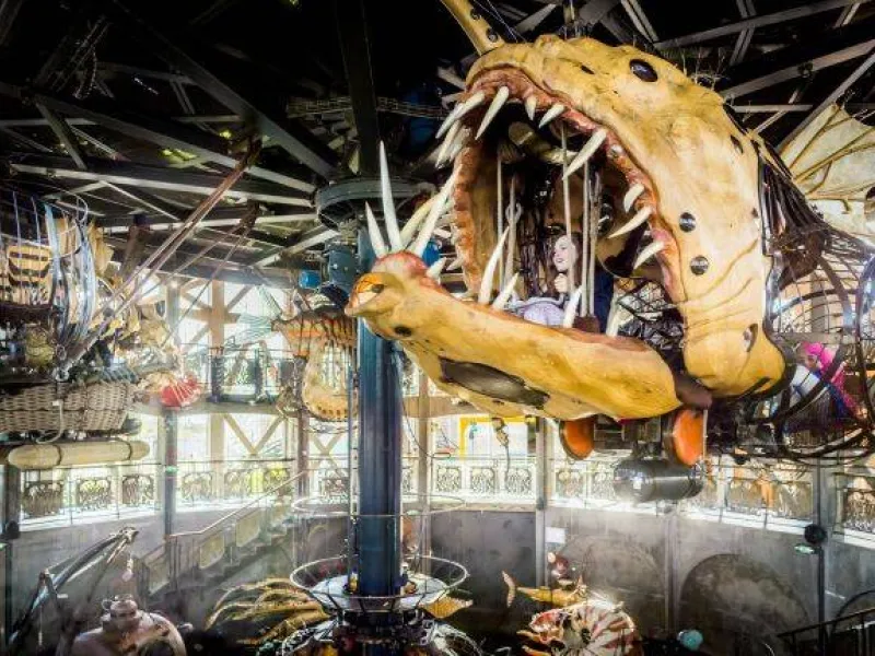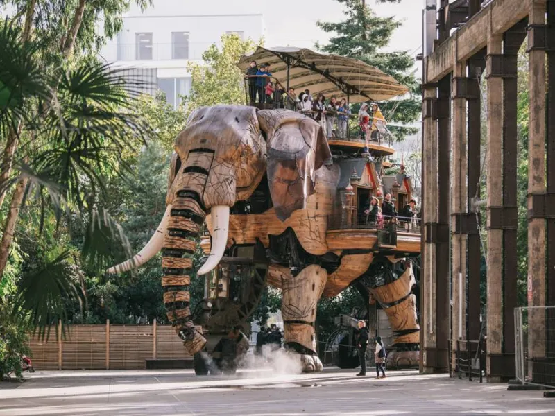 Installed on the site of the former Nantes shipyards, Les Machines de l'Île is the brainchild of François Delarozière and Pierre Orefice. This extraordinary artistic project lies at the crossroads of the invented worlds of Jules Verne, the mechanical ingenuity of Leonardo da Vinci and the industrial history of Nantes.The tour invites visitors to enter a world populated by mechanical creatures in motion. The Grand Elephant, the site's emblematic figure, transports visitors several meters into the air, offering a spectacular journey through the district. In the Galerie des Machines, visitors discover the living workshop where prototypes, mechanical animals and large animated structures take shape.