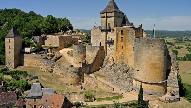 Listed as a Historical Monument in 1966, Castelnaud castle overlooks the Dordogne valley and has a great view over the château and village of Beynac to the north and the hanging gardens of Marqueyssac opposite in the curve of the river. Owned by the Rossillon family, the château built from the 12th to the 15th centuries has had three major renovation works which now make it one of the most visited sites in Périgord Noir.