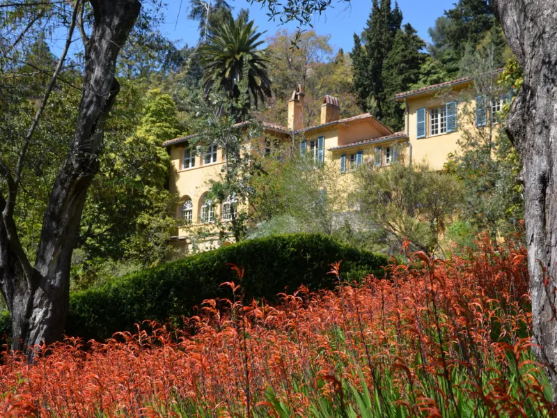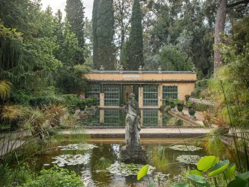 A few kilometres from the coast, in the Madone district, on the road to Gorbio, in a very hilly area and on the slope of a real ridge - a greenhouse - Lawrence Johnston, American, British citizen and French at heart, chose to make his home and create a garden where he could install the rarest plants that he would bring back from the end of the world.A cypress-lined road leads to the property. Along this access ramp, one discovers magnificent species that make the originality and quality of this garden: the Himalayan tropical oak, whose leaf has nothing to do with an oak leaf, the two immense Podocarpus trees with their fine sickle-shaped leaves and thick shade, the two Washingtonia filifera trees, the large Magnolia delavayi from Yunnan and finally the exceptional Nolina from Mexico. Entering this timeless place, cut off from the hustle and bustle of the city, the fragrances that emanate from the garden, the birdsong, the majesty of the large plants, awaken our senses.