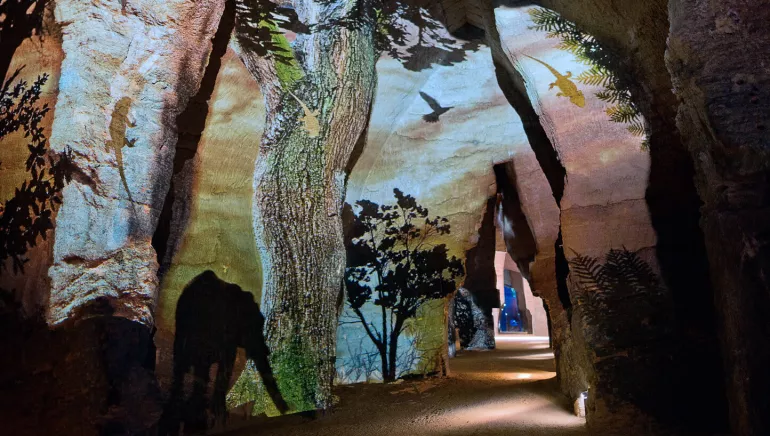 Through an underground scenographic walk, visitors are transported into the underwater world present at Doué-la-Fontaine 10 million years ago. An educational film is shown, along with light effects, blue iridescent walls, a ballet of fish and a mirror of water... As you explore the caves, you'll discover the history of the site, the geological upheavals that gave birth to it, the animals that inhabited it and the people who dug it. A fabulous journey between land and sea, past and present, dream and science.