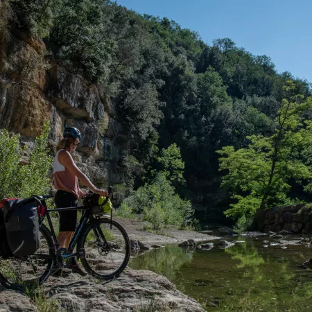 Pause en bord de rivière à Rennes-les-bains - La Vélosud © Gaillard Munsch