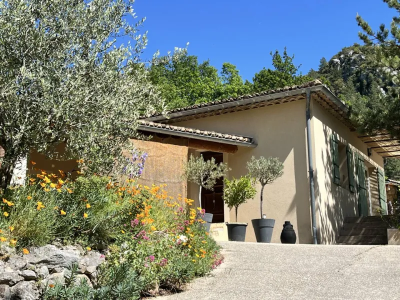 On a terrace with a breathtaking view over both the village of Brantes and the valley, you can enjoy a good book in peace and quiet, with a cup of tea or one of the organic beers brewed in Brantes by Pascale and her sidekick Rory. In July and August, the evenings come alive with concerts that enchant the valley.Localisation